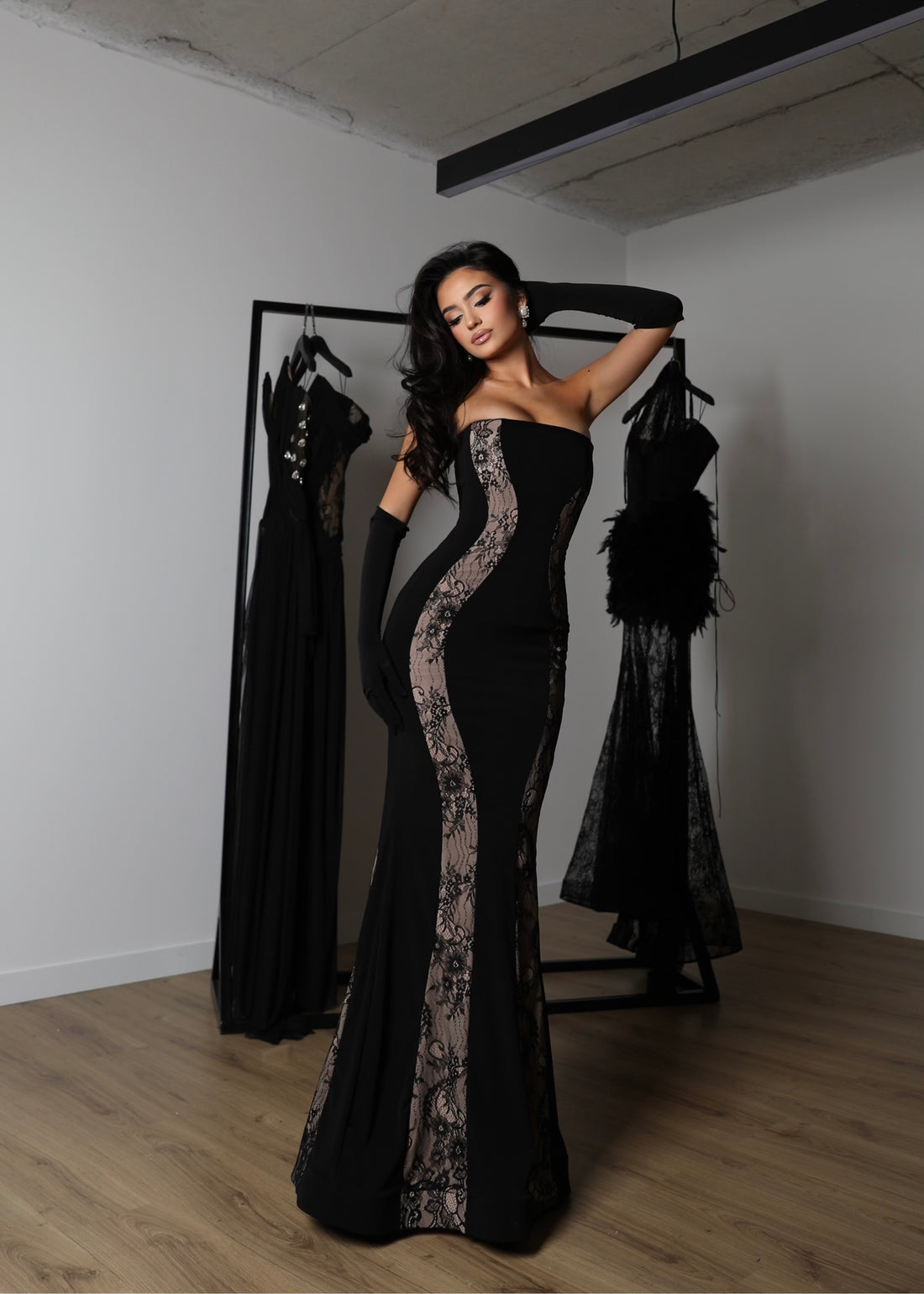 Long Drese Strapless design Black with nude lace sides Mermaid silhouette Floor length Black...