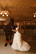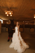 This gown flows like a dream, capturing the magic of a fairytale.
