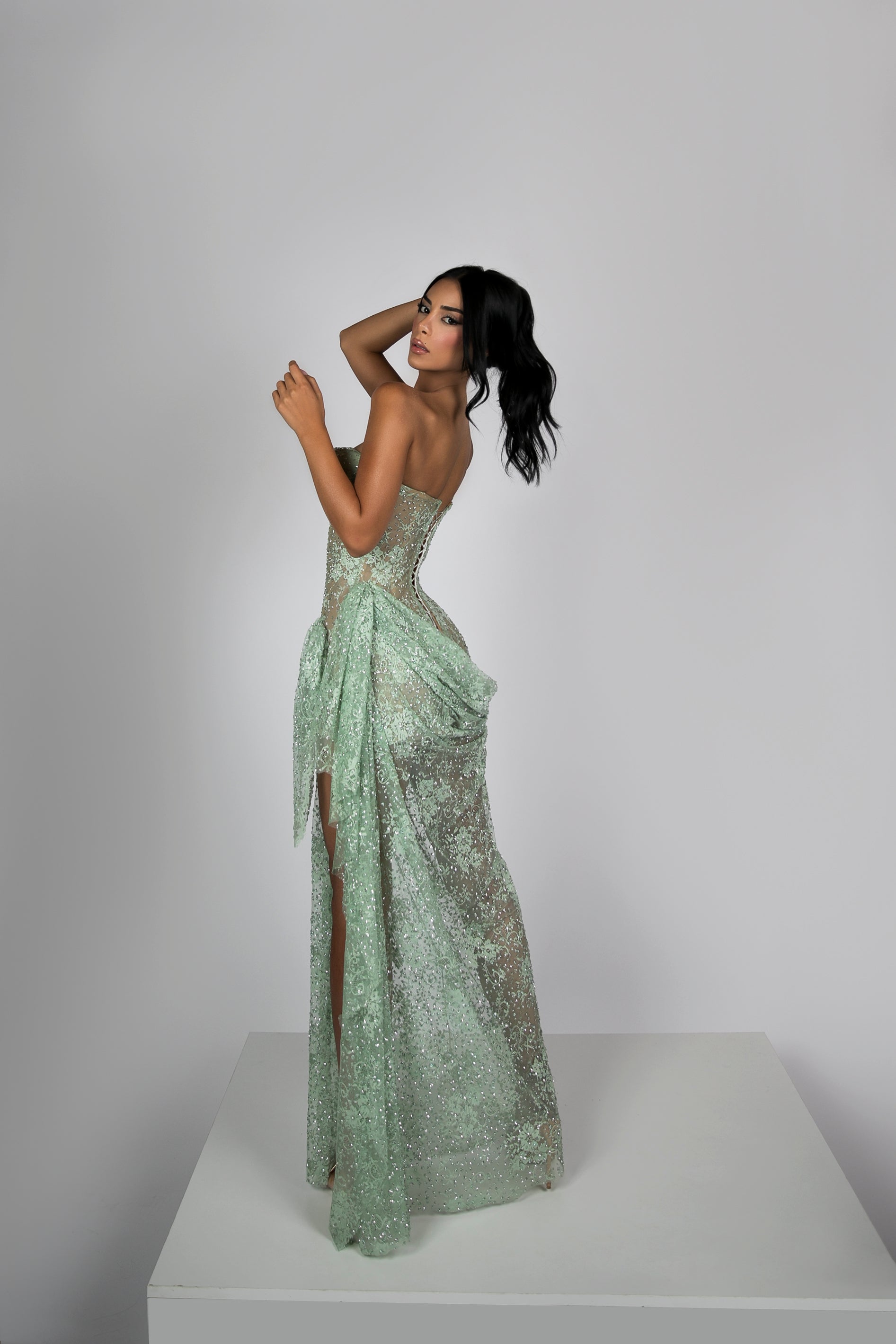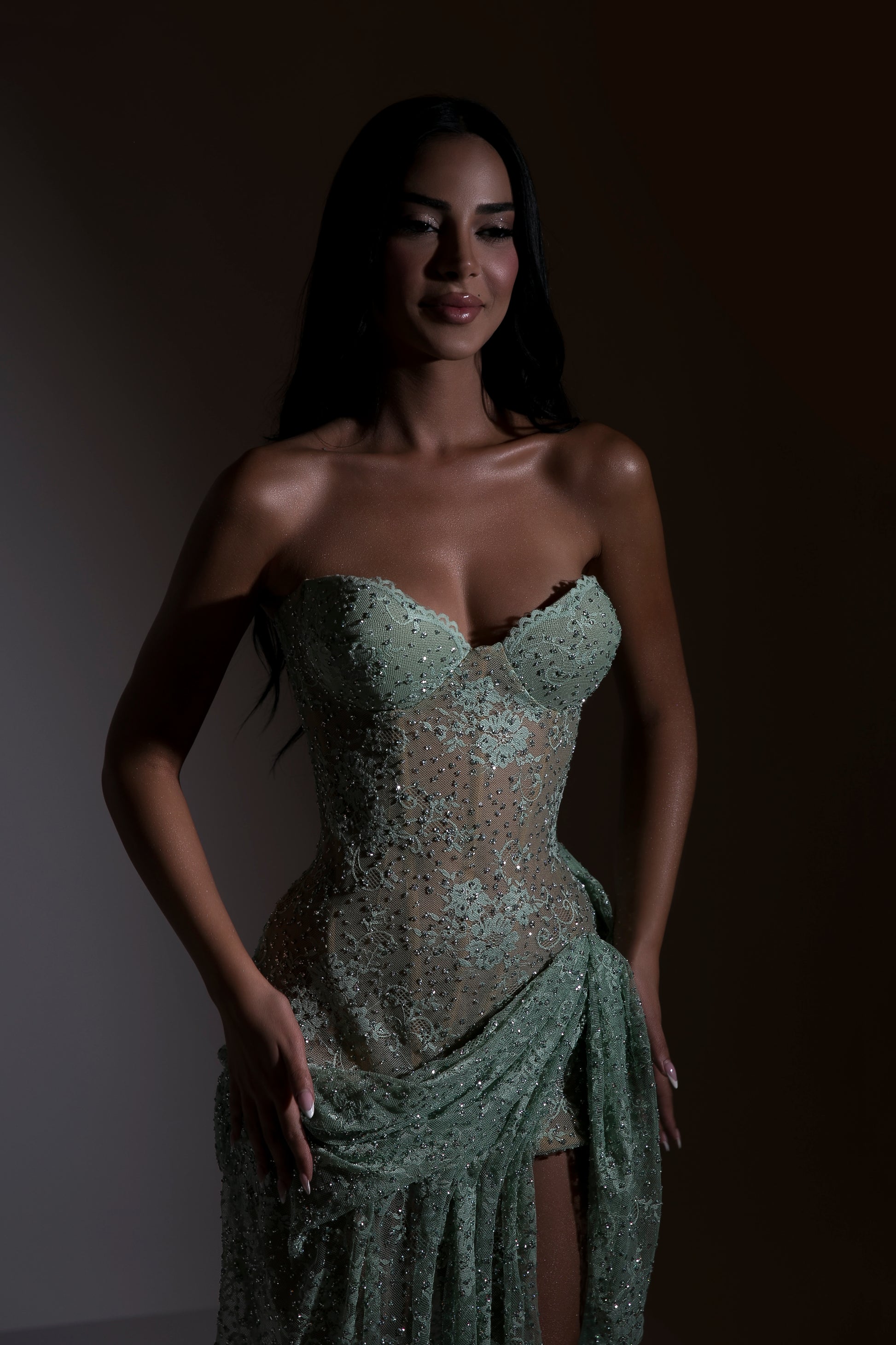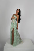 - Strapless long mint gown