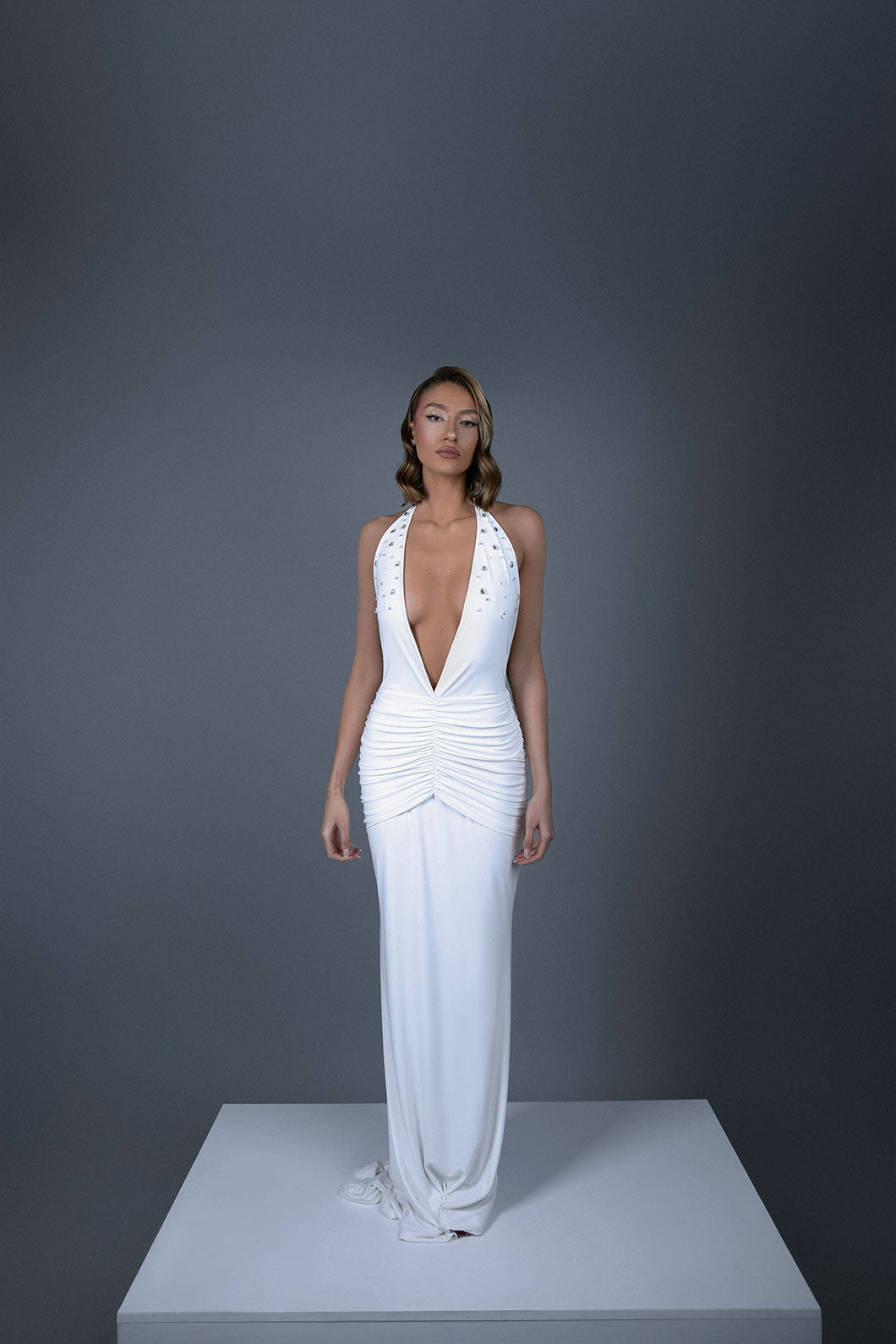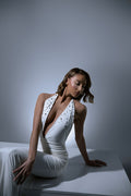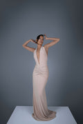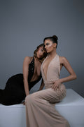 Crafted from our ultra-soft, body-contouring fabric, our V-cut Plunge Neckline Maxi Dress is designed to embrace your curves with a sculpted fit that exudes confidence. Featuring a daring halter neck with self-ties, this sleeveless ensemble boasts a captivating backless design for a touch of allure. Adorned with delicate beads on the front, this full-length dress combines comfort and glamour effortlessly, ensuring you stand out with elegance and grace at any occasion.