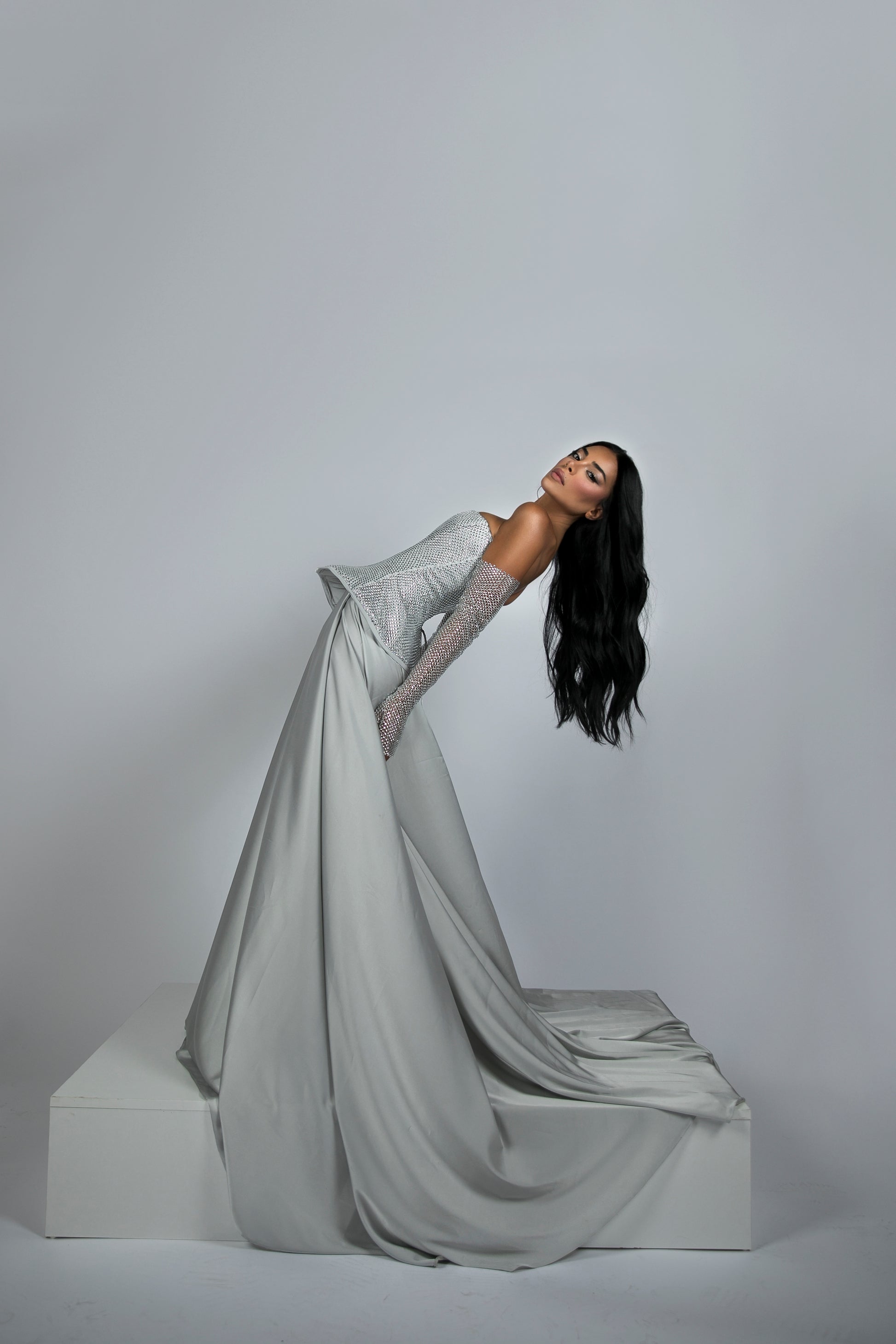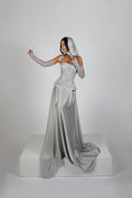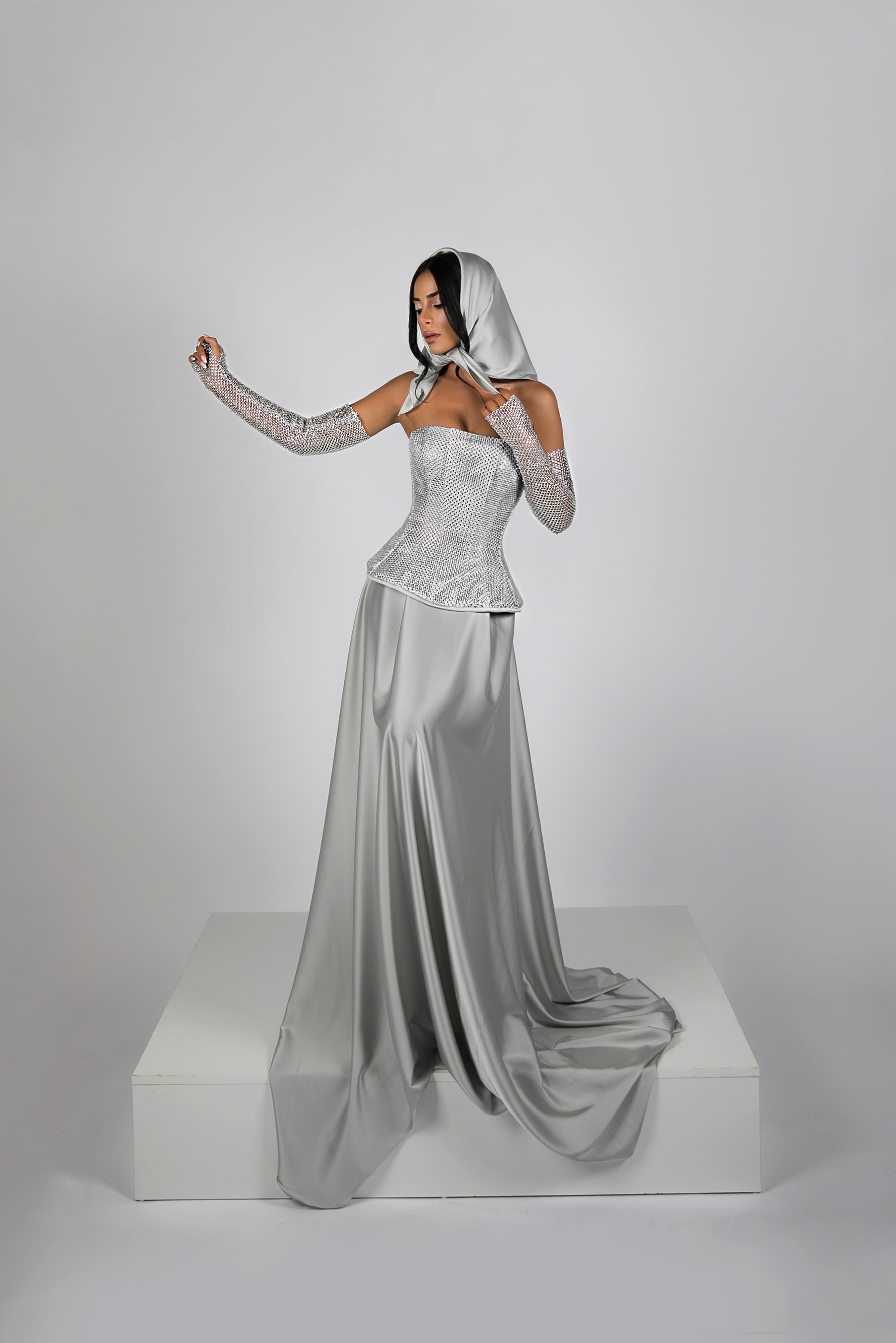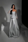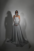 - Floor-length silver dress